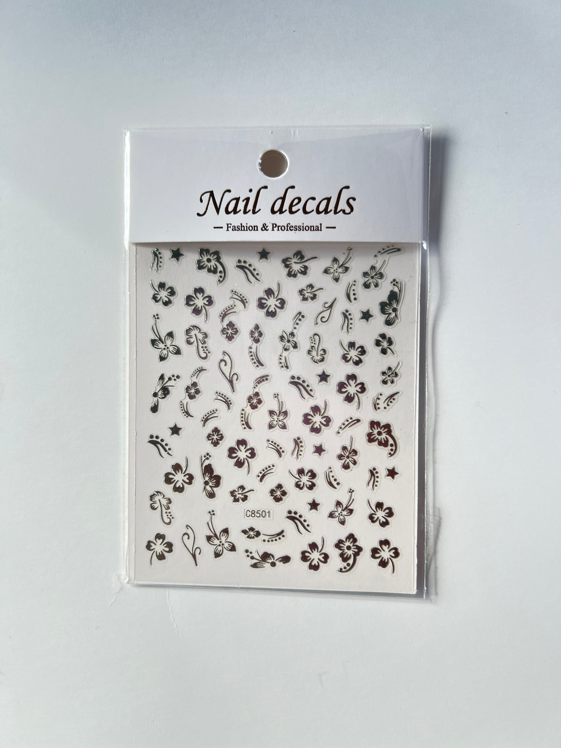 NAIL STICKERS/SILVER HAWAIIAN FLOWER